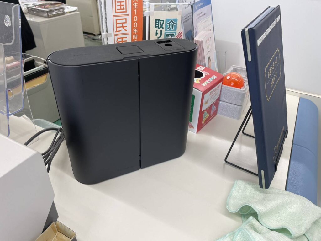 「お客様のおもてなし」と「従業員の環境配慮」の目的で、デモ機を設置させていただきました。